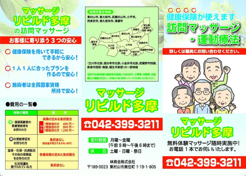 リビルド多摩では、マッサージを必要とされる方が無理な外出をせず住み慣れた自宅で安心できるマッサージ受けられるよう、そして元気で暮らしていける日常を提供できるようにお手伝いさせていただけたらと思います。